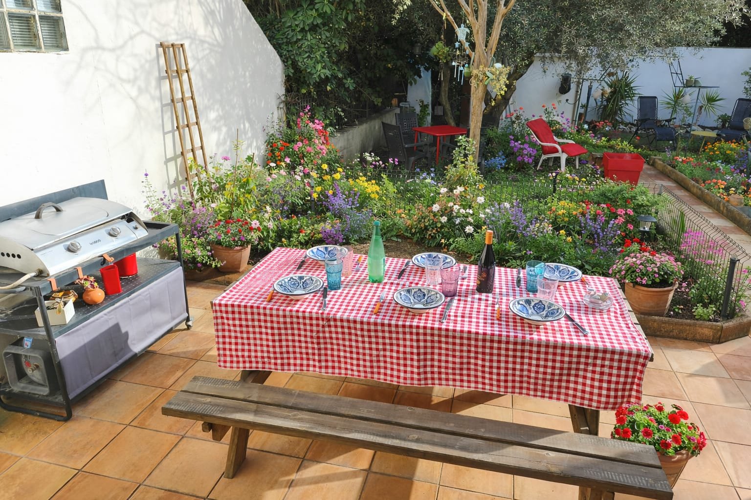 Vous pourrez profiter d’un agréable jardin arboré, idéal pour se détendre, lire ou prendre un repas en plein air (plancha à gaz)